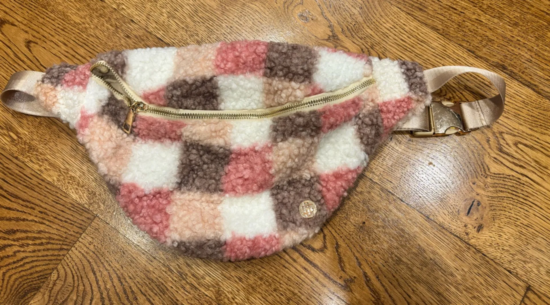 Simply Southern Checker Sherpa Fanny Pack Adjustable Waist Belt Nwot Pink - $10 - From Atheana
