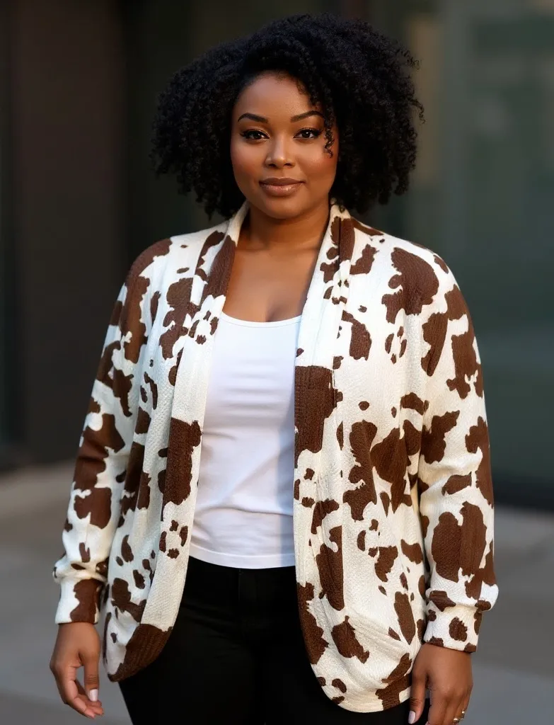 Simply Southern Cow Print Waffle Knit Cardigan size XXL Like new condition Cream and brown print... Show more