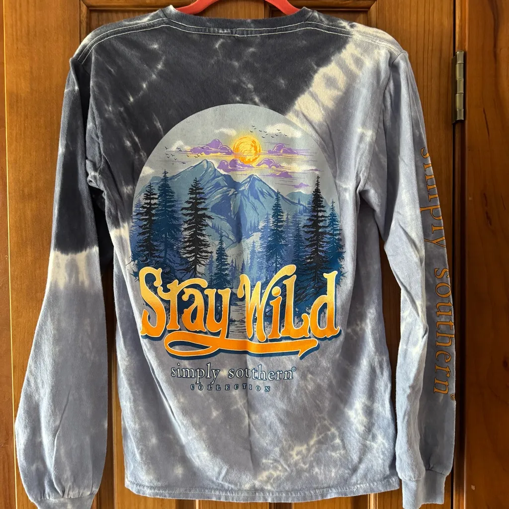 Simply Southern Stay Wild Shirt Women’s Small Blue Tie Dye Mountain Long Sleeve - $18 - From Crystal