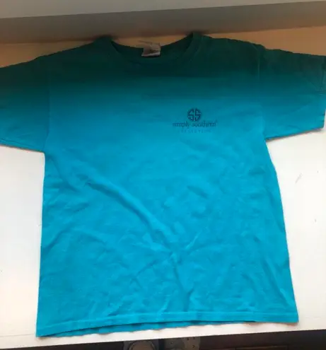 -turquoise blue softball t shirt -worn but in good condition -YOUTH medium