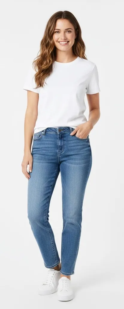 Keywords: denim, straight leg, blue wash, classic, everyday, comfortable, cotton blend, stretch, workwear, casual, basic, staple, wardrobe, Simply Vera, Vera Wang, Designer