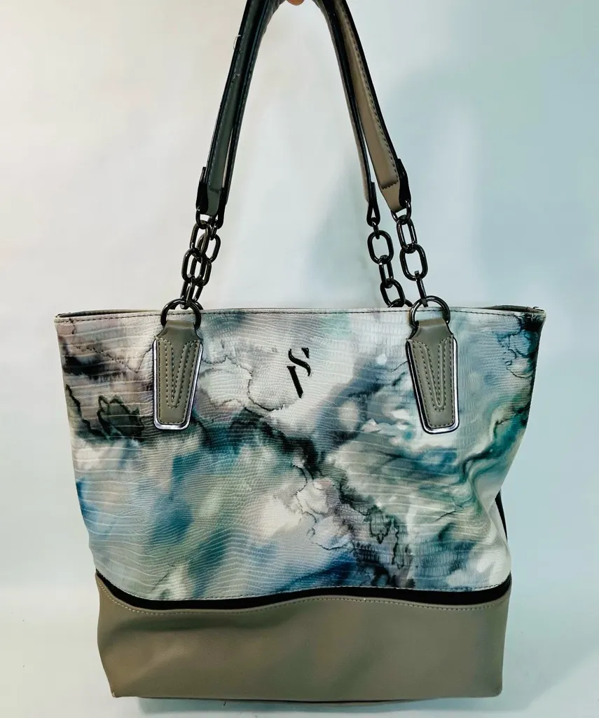 Snap top close Middle zippered compartment separates side compartments on each side. Additional s... Show more