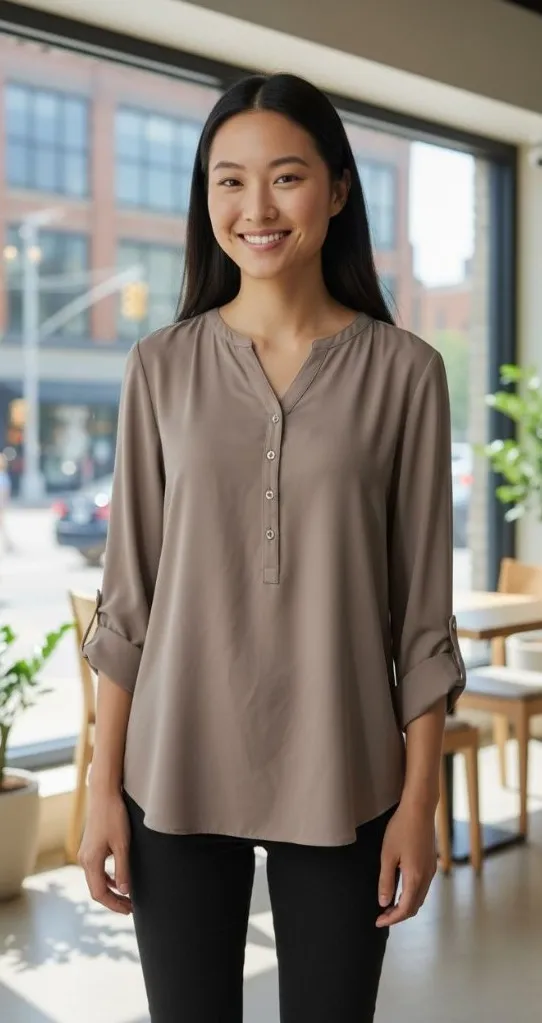 +++EXCELLENT CONDITION+++LIKE NEW ****Reasonable offers are welcomed**** Before you buy a garment, please ask me any questions you may have and I will immediately answer them. Take a look at all the photographs of the listing. I can share more photographs and/or more information, just send me a message, here to help. I ship the same day with no exceptions depending on what time the order comes in :) This Simply Vera Vera Wang blouse exemplifies understated elegance. Crafted for the modern woman, its flowing silhouette and soft taupe color offer a versatile addition to any wardrobe. The long sleeves with button closures enhance its graceful design. Made from polyester, it provides both comfort and style. Perfect for layering or wearing solo, this blouse is an excellent choice for those seeking to elevate their everyday attire with a touch of sophistication. • Button front closure • Long sleeves with button cuffs • Elegant taupe hue • Made for a versatile wardrobe addition Top to bottom = 28 inches
