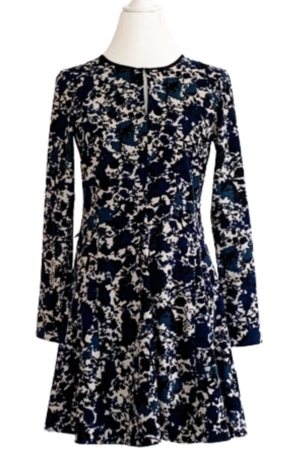 Simply Vera Vera Wang Women’s Blue Tan Floral A-line Long Sleeve Mini Dress Size XS EUC Featu... Show more