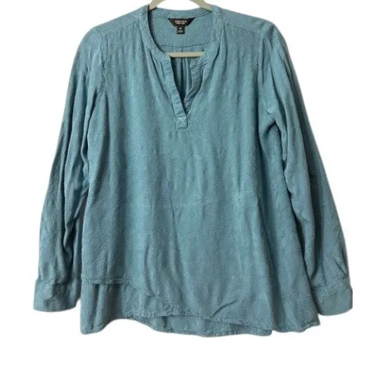 Medium Simply Vera Wang blouse in a serene blue floral, evoking coastal charm and romantic elegance... Show more