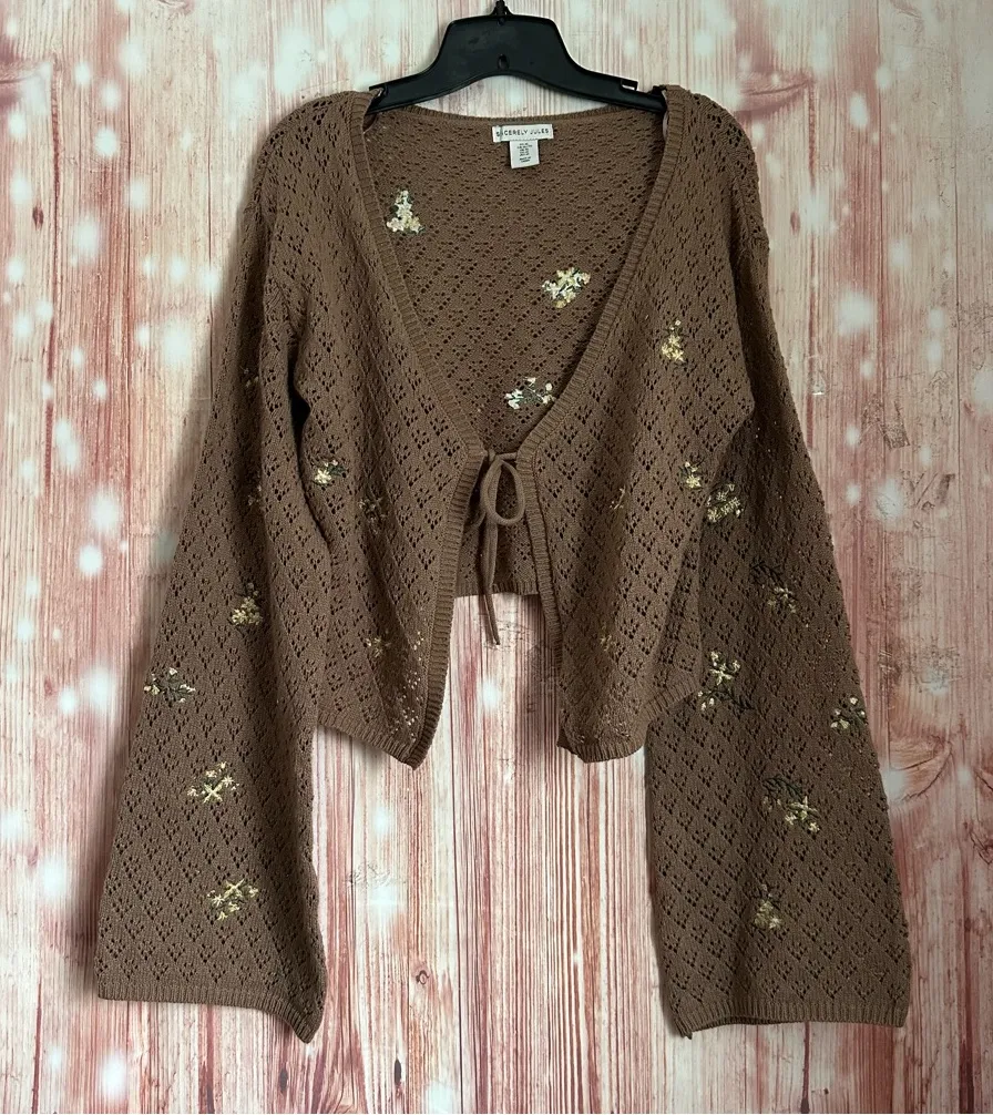 Sincerely Jules Mocha Brown Floral Crochet Bell Sleeve Tie Front Cardigan Sz XL - $18 - From Melissa