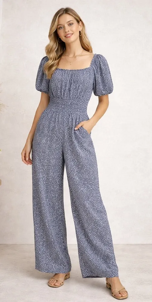 Effortless and chic, this Sincerely Jules jumpsuit is a versatile warm-weather staple with timeless boho-meets-preppy appeal. Featuring a soft square neckline, short puff sleeves, and a cinched waist, this one-piece creates a flattering, easy silhouette that moves beautifully. The subtle all-over print gives it a coastal nautical feel, making it perfect for beach vacations, cruises, brunch, or everyday casual wear. Dress it up with espadrilles or keep it relaxed with sandals for an effortless cottagecore, coquette, or coastal capsule wardrobe look. Boho · Peasant · Coastal · Cottagecore · Coquette · Nautical · Preppy · Casual Chic · Beach Vacation · Cruise Wear · Minimal Romantic Sincerely Jules jumpsuit, women’s boho jumpsuit, peasant jumpsuit, coastal jumpsuit, nautical casual jumpsuit, cottagecore outfit, preppy summer jumpsuit, beach vacation outfit, coquette jumpsuit #SincerelyJules #BohoJumpsuit #PeasantStyle #CoastalChic #CottagecoreOutfit #CoquetteStyle #PreppyCasual #BeachVacationWear #CruiseOutfit #OnePieceStyle