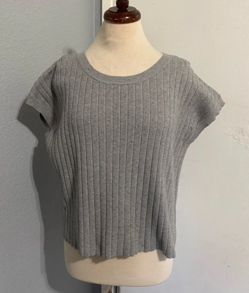 Chic gray ribbed top with short sleeves. Ideal for casual wear. Preowned - Good condition - Please... Show more