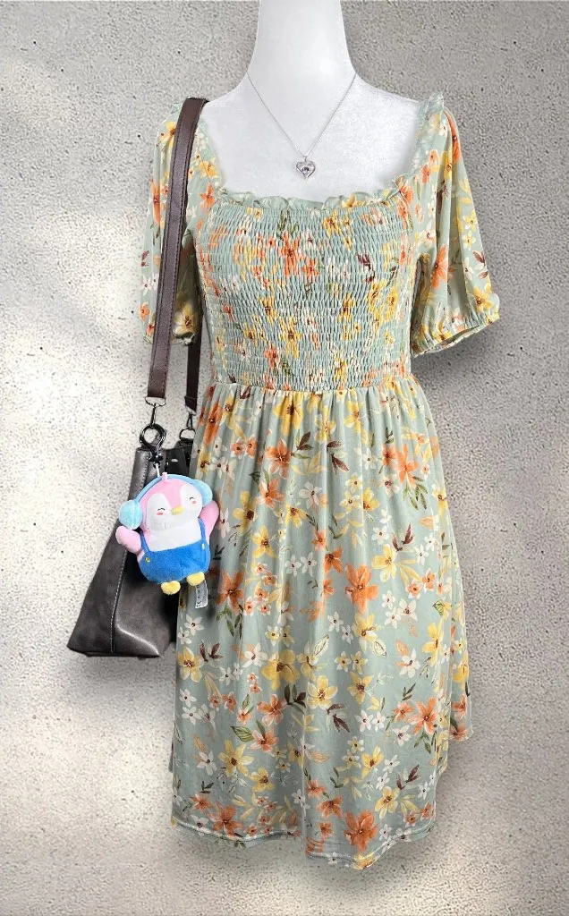 siren lily floral smocked mini dress 🌿 soft green base with a delicate floral print that feels airy... Show more