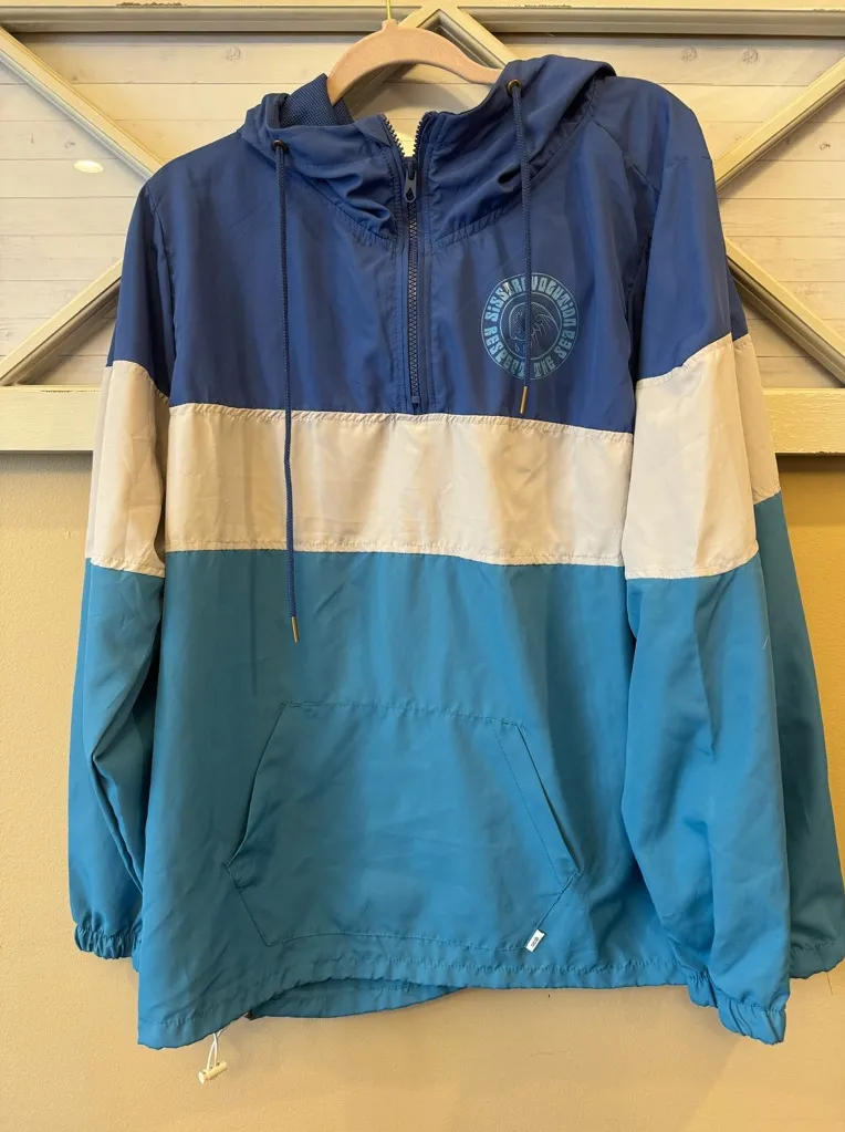 This SISSTREVOLUTION jacket is perfect for all seasons. The lightweight and water-resistant material makes it easy to pack and take with you anywhere. The 1/4 zip and hooded design provide added protection from the wind while the breathable material keeps you comfortable. With multiple pockets, you can easily store your essentials. The jacket comes in a beautiful blue color with zipper accents, making it a stylish addition to any outfit. Available in size 2XL and designed for plus size women, this windbreaker jacket is perfect for those who want to respect the sea while looking great doing so.