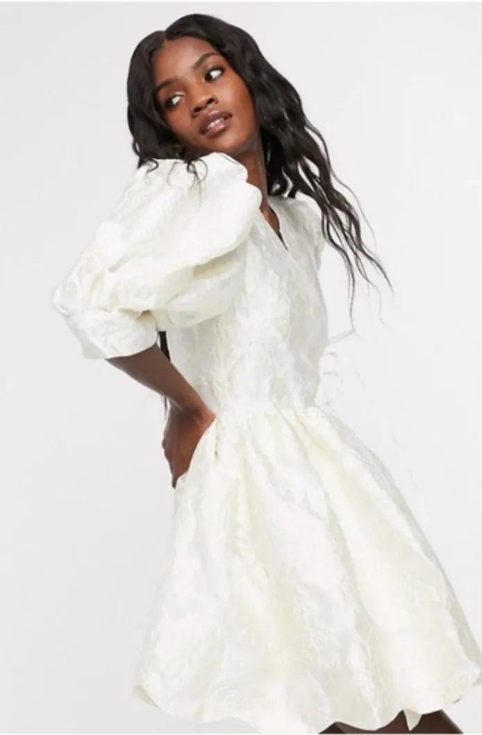 Romantic and statement-making, this Sister Jane Dream Cowboy Kisses Wrap Dress in soft ivory jacquard is the perfect blend of vintage-inspired charm and modern elegance. Designed with voluminous puff sleeves, a flattering V-neckline, and a tie-wrap waist, this dress creates a feminine silhouette that’s ideal for special occasions, parties, or bridal events. Brand: Sister Jane (Dream collection) Style: Cowboy Kisses Wrap Mini Dress Color: Ivory / White floral jacquard Material: Structured floral jacquard fabric Features: Puff sleeves, tie waist, V-neckline, lined interior This elegant dress pairs beautifully with strappy heels or boots — perfect for weddings, showers, or a chic night out. Condition: Pre-Owned. In good condition. Inside tie string has been professionally replaced. All items come from a pet-free, smoke-free home. Please look at all the pictures they are a big part of the description. sister jane dress, puff sleeve mini dress, white jacquard dress, bridal shower outfit, elegant wrap dress, romantic style, statement sleeves, vintage inspired, cocktail party dress, modern feminine