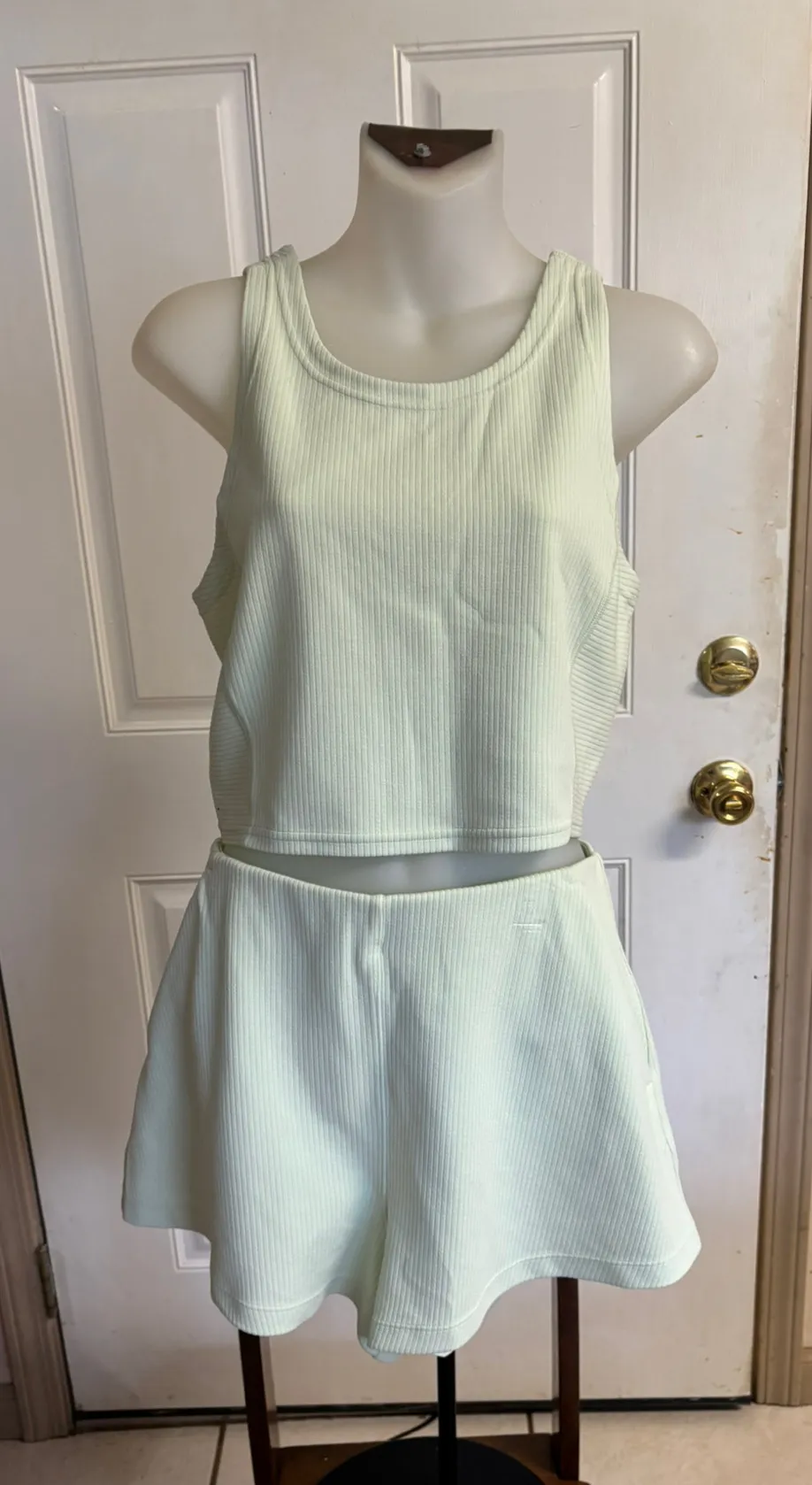 Size 8 Lululemon Kohlrabi Green Ribbed Softstreme 2" High-Rise Shorts/ Cropped Tank Top. In EUC! W... Show more