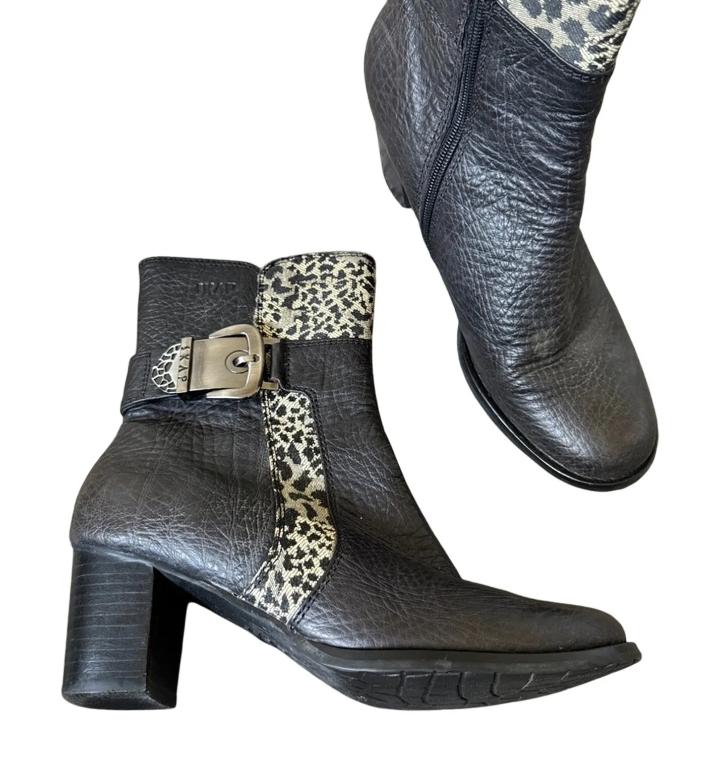 Skap Black Leather Animal Print Ankle Boots Womens 6 Fall Preppy Classic Booties - $40 - From Lisa