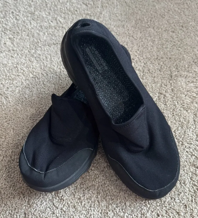 Skechers Goga Mat Black Knit Sneakers Slip On Shoes NO TIE in Women's Size 9. Closed toe, loop at b... Show more