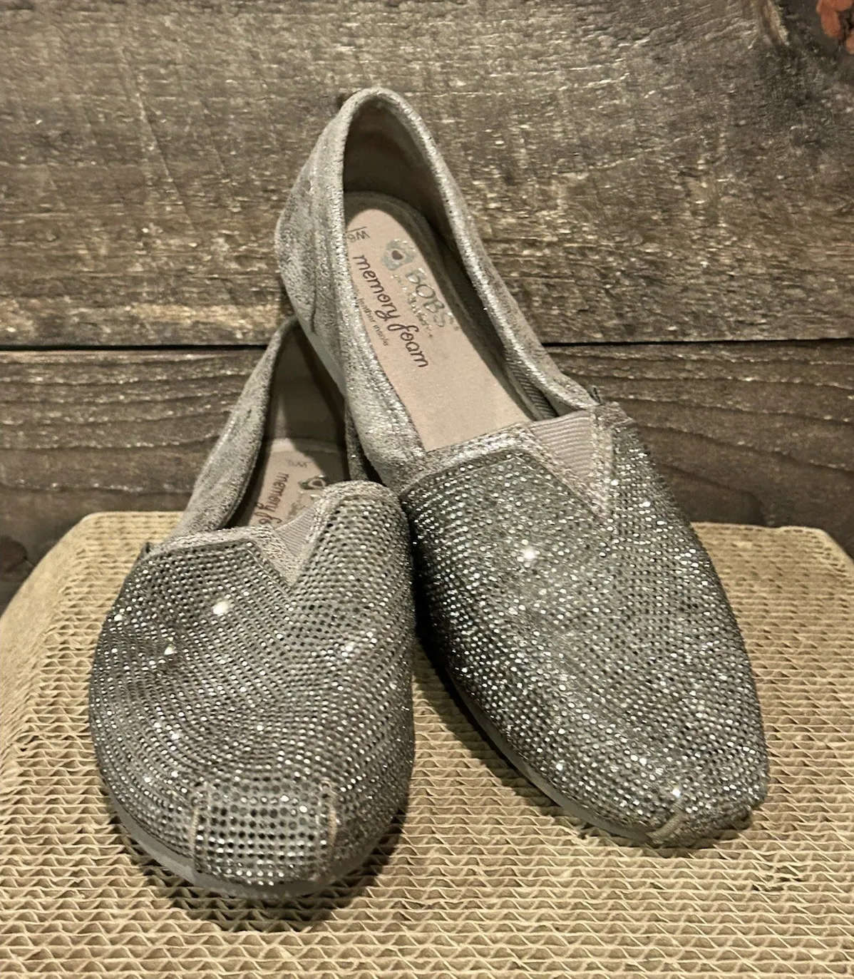 Skechers Luxe BOBS Slip On Shoes Women's Size 6 Big Dreamer Silver Metallic These shoes are in good... Show more