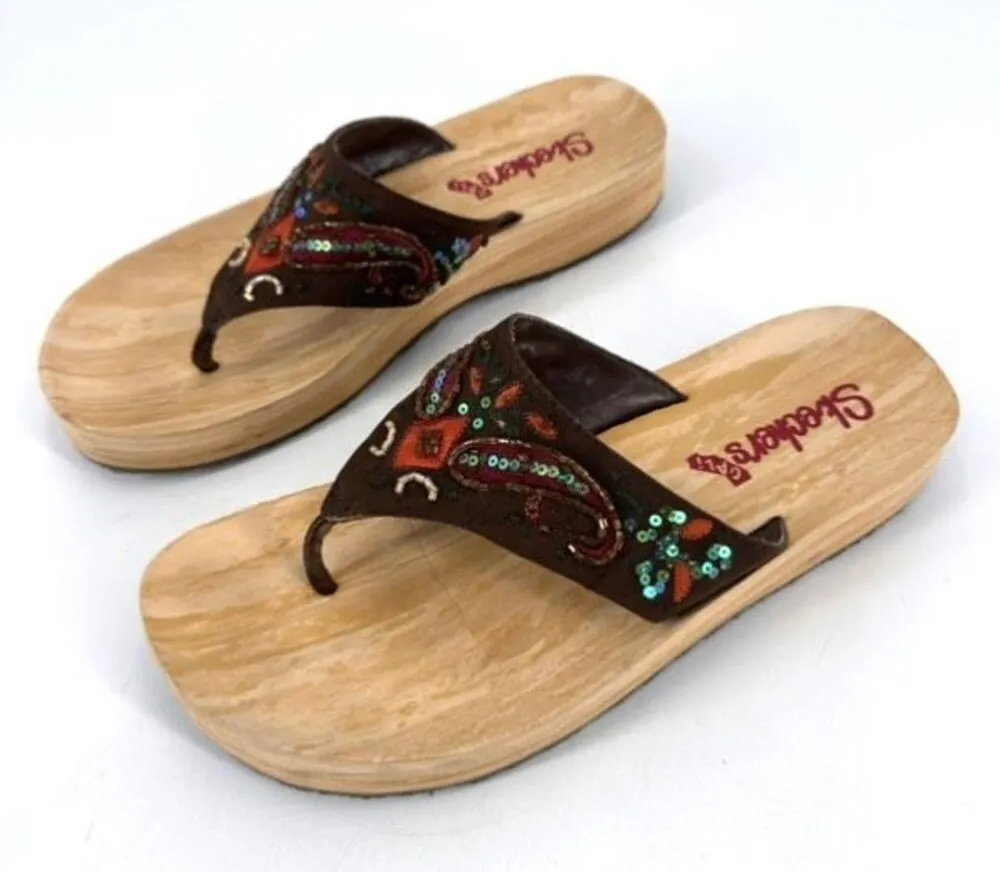 Skecher Cali Womens Beaded Slip On Flat Flip Flop Thong Sandals Brown Size 7 Brand: Skechers Depart... Show more