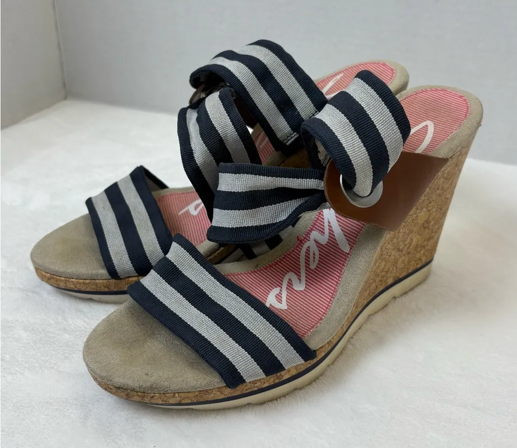 Sketchers Women’s Casual Summer Strappy Striped Blue & White Wedge Heels Size 8 Used condition, has... Show more