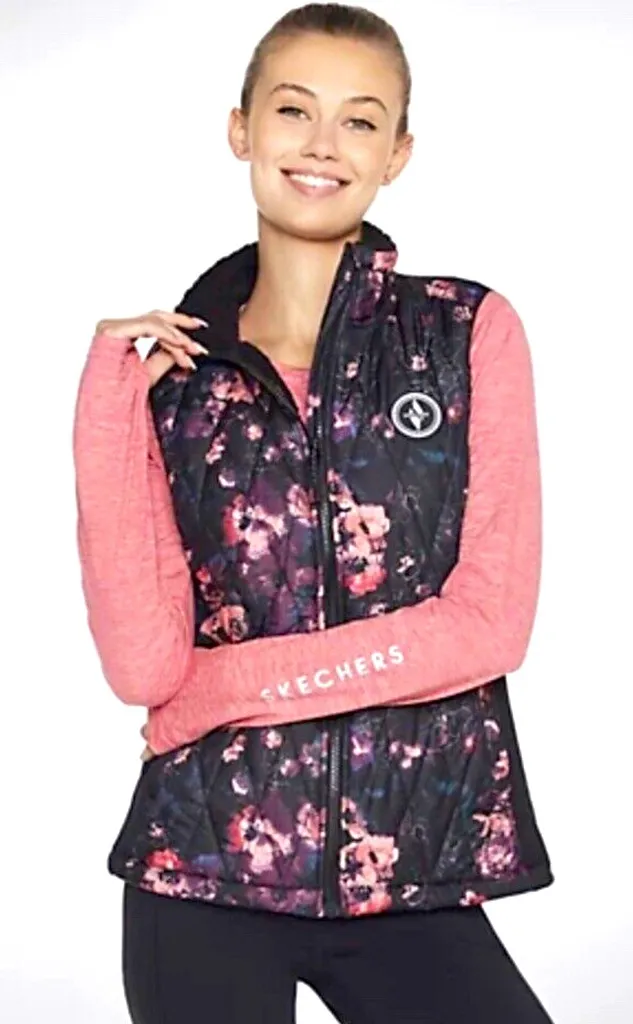 Feminine style and functional comfort combines in Skechers GoWalk linear floral diamond vest. This w... Show more