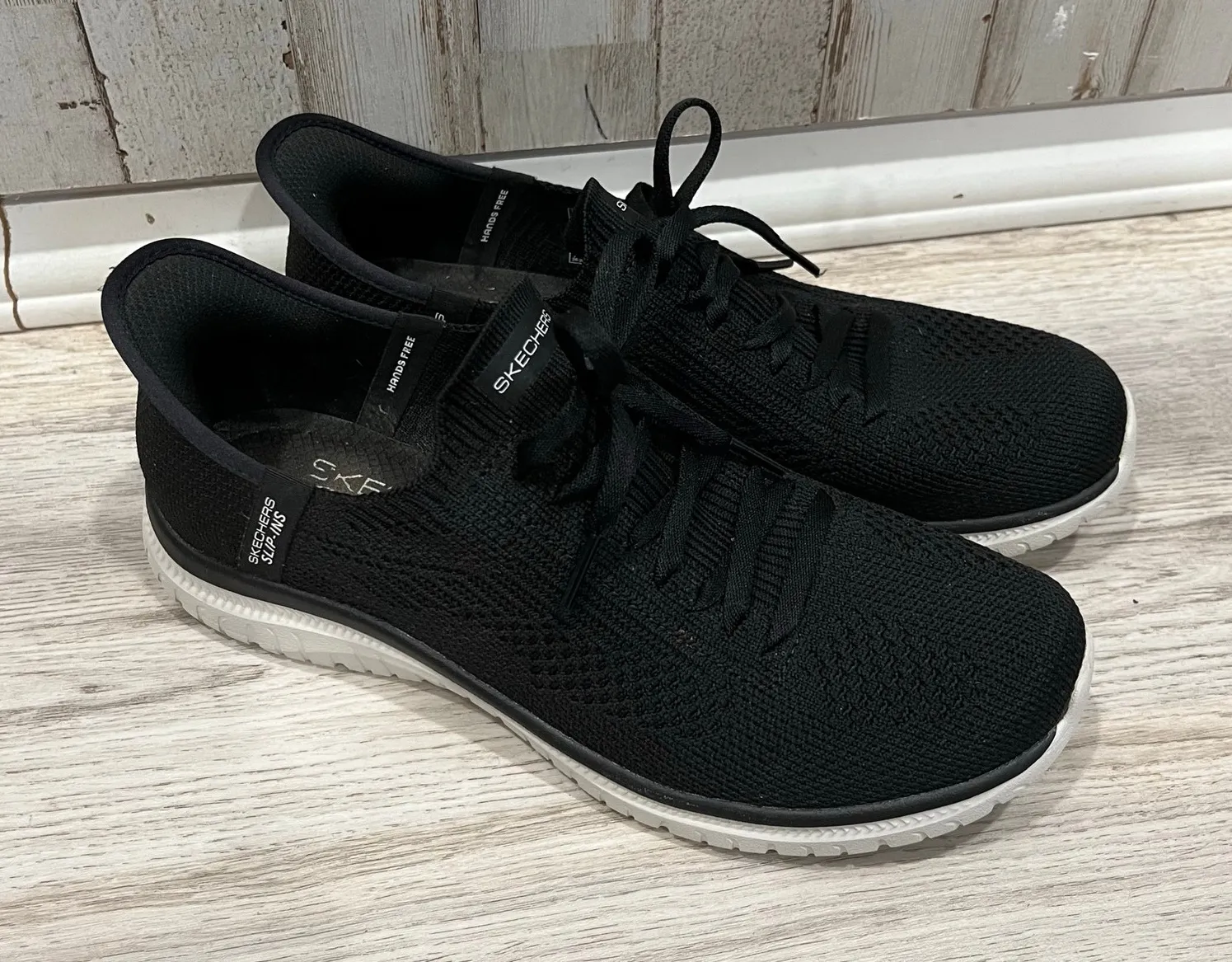 Skechers Virtue Divinity Swift Fit Hands Free Shoes! These black shoes are in good pre-owned conditi... Show more