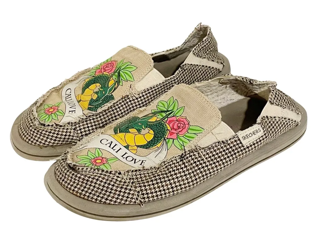Skechers Womens Cali Love Canvas Graphic Love Flowers Checkered Slip On Shoe 9 Size 9 Pre Owned Cond... Show more