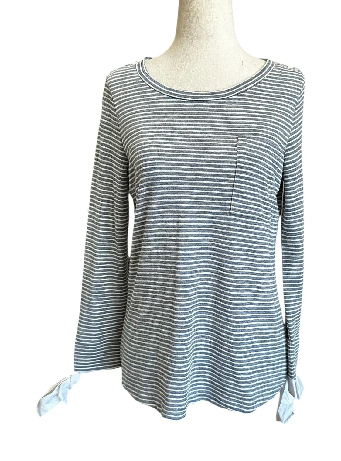 Condition: preowned women’s Size: xs Category: top Color: blue/white Style: shirt Neckline: round Sleeve: regular Sleeve Length: long Sleeve Pattern: stripe Closure: pullover Garment Care: machine wash Material: 70% polyester, 30% cotton Country/Region Manufacture: china