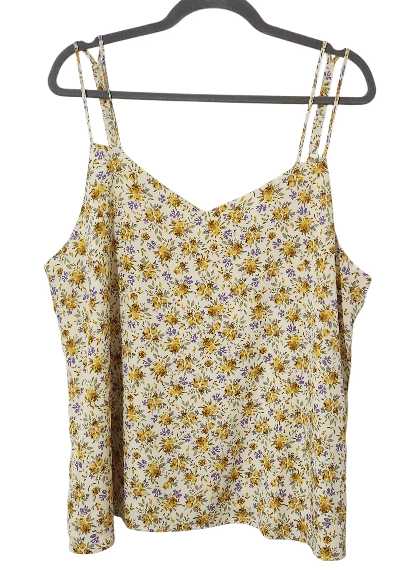 Skies are Blue floral yellow tank top with shades of purple and green. Lined and has adjustable stra... Show more