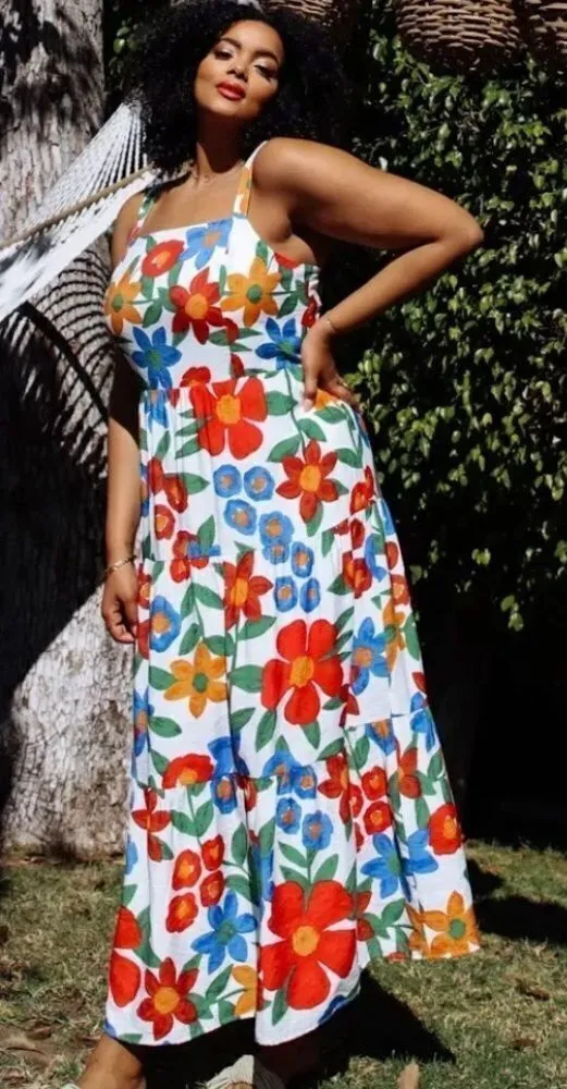 Skies Are Blue Curvy Plus Size Smocked Isabel Sleeveless Floral Maxi Dress 1X - $47 - From Blue