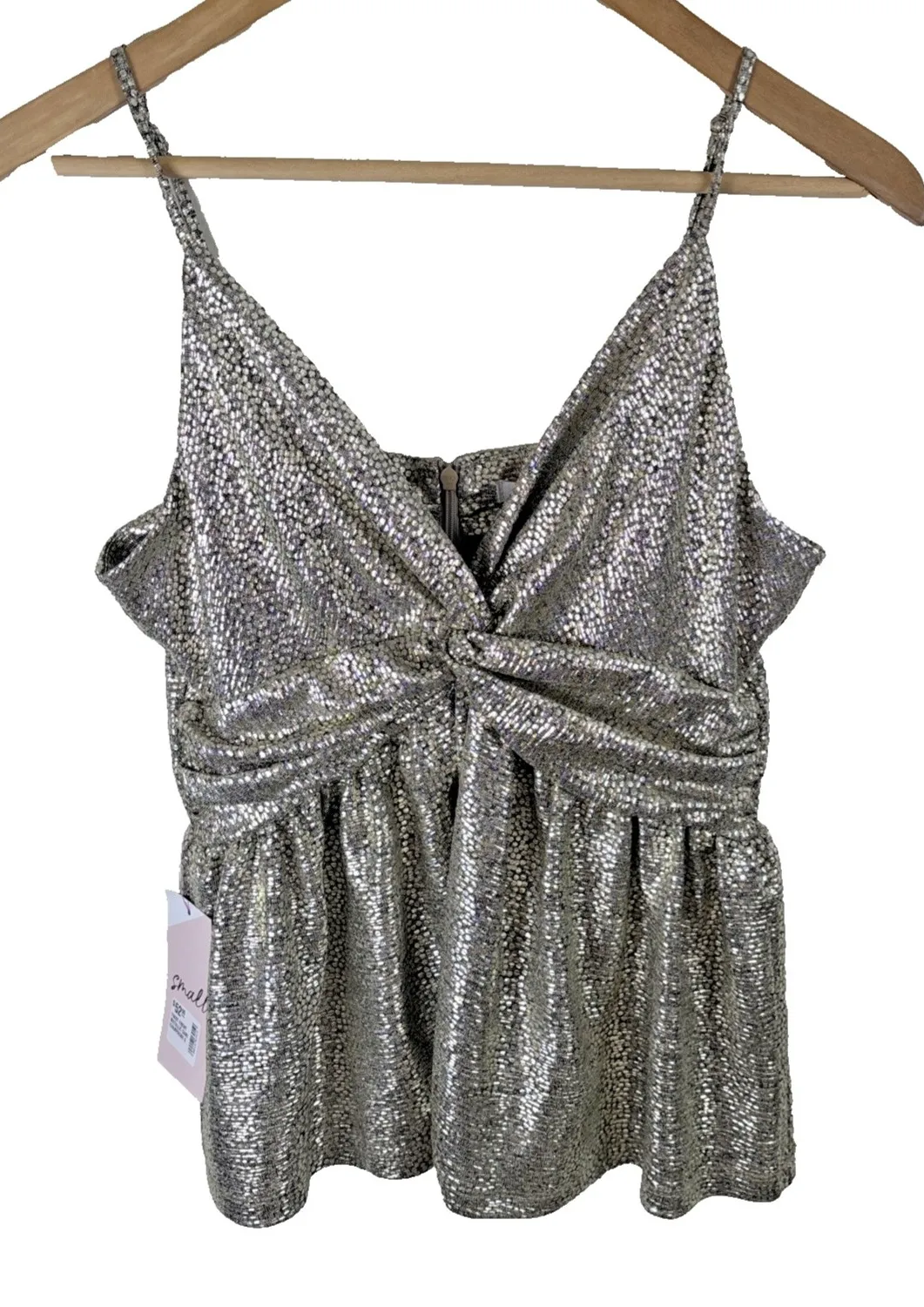 Skies Are Blue Tank Shirt Sz S Champagne Twist Front Metallic Blouse Night Out Gold - $25 New With Tags - From Krystal