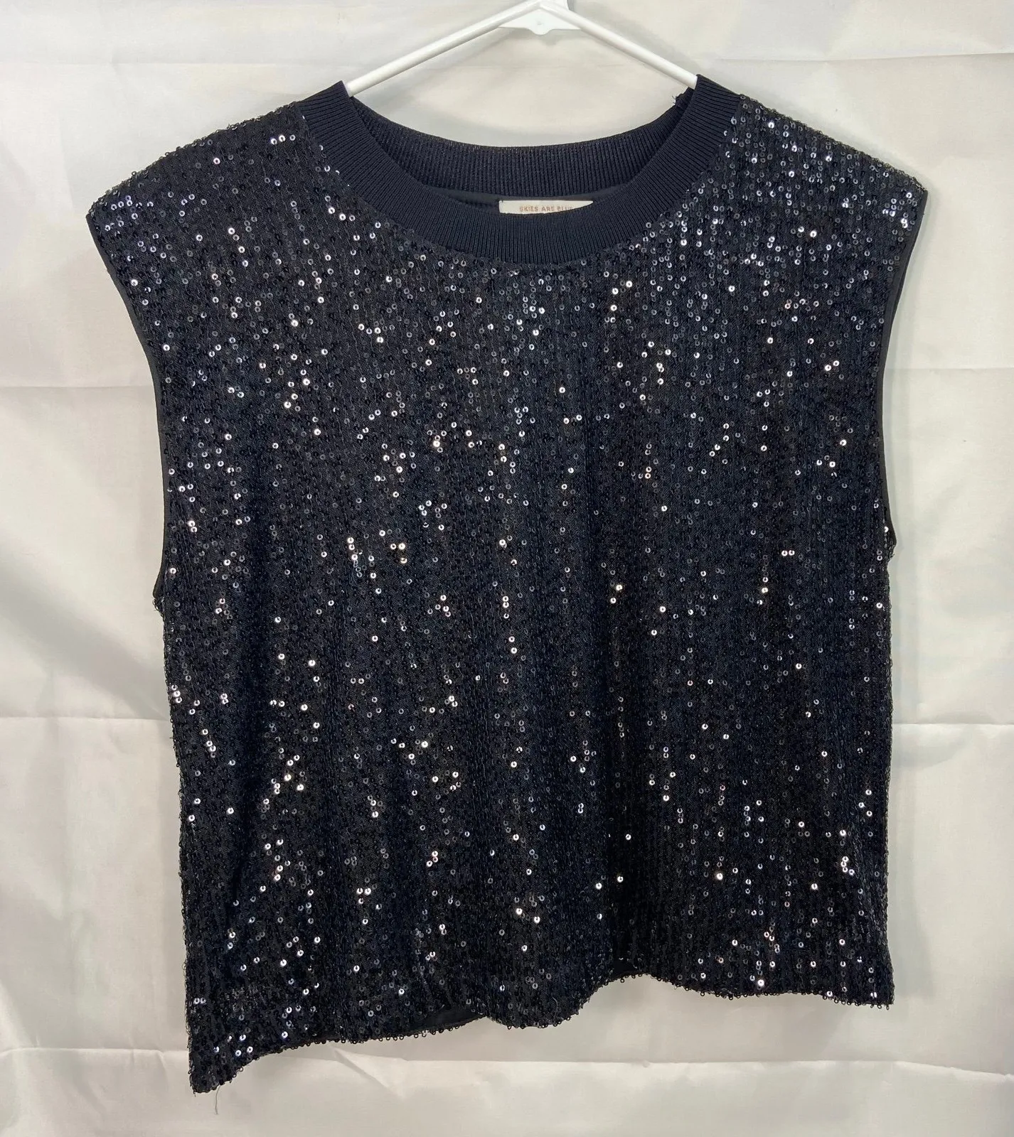 Skies Are Blue women's black sequin striped crewneck sleeveless blouse top Has light nonremovable sh... Show more