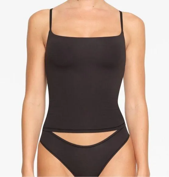 You'll want to stock your closet with this unbelievably stretchy cami that's perfect for wearing alone or layering under clothes. Hits at the top of the hips and features a shelf bra for light support. Fits true to size. FIT & CARE • Fitted double-lined cami, Shelf bra, Wide scoop neckline, Standard length, Intended to hit top of hips • Sarah is size 2, 34B, and 5' 10" (178 cm), wearing SKIMS • 76% Polyamide / 24% Elastane • Machine wash cold, Non chlorine bleach, Cool iron, Do not dry clean • Imported