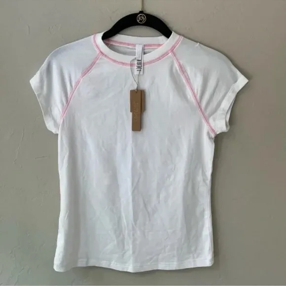 SKIMS NEW VINTAGE RAGLAN T-SHIRT SNOW (WHITE) PiNK Trim WOMENS 4X White - $28 - From Cutie