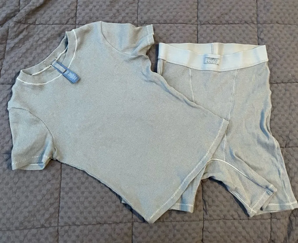 SKIMS ribbed t shirt and ribbed boxer shorts slate blue XS - $50 - From Deidra