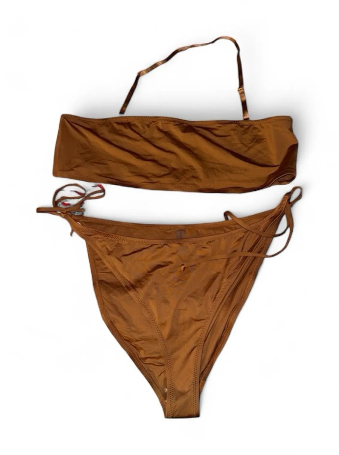 SKIMS Size 4X Bandeau Top + Bikini Bottom Set Almond Women’s Swim New with tags Color without flas... Show more