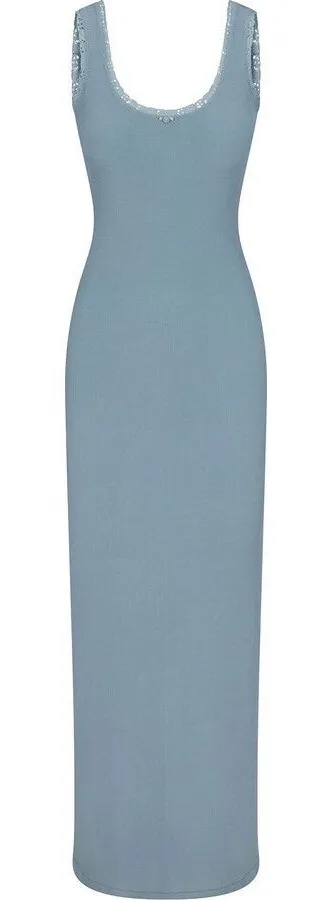 Skims Soft Lounge Lace Scoop Neck Dress Arctic Blue Maxi Size Small Sleeveless Solid Blue - Dusty... Show more