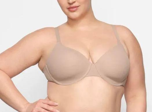 SKIMS Fits Everybody T-Shirt Bra Size: 38DD Color: Micah New with tags *Welcome to the world’s most comfortable bra! The ultimate bra with next-level stretch and comfort for the perfect fit. Engineered to fit in between sizes and offers unparalleled support with its flexible underwire and lightly lined cups. Features adjustable straps and hook and eye back closure. Fits true to size.