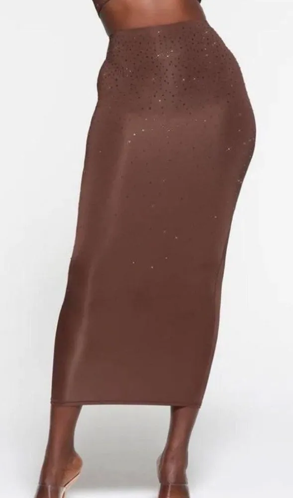 Skims x Swarovski Crystal Jelly Sheer Tube Skirt‎ In Cocoa Brown NWOT Sz S - $211 New With Tags - From Patchworked