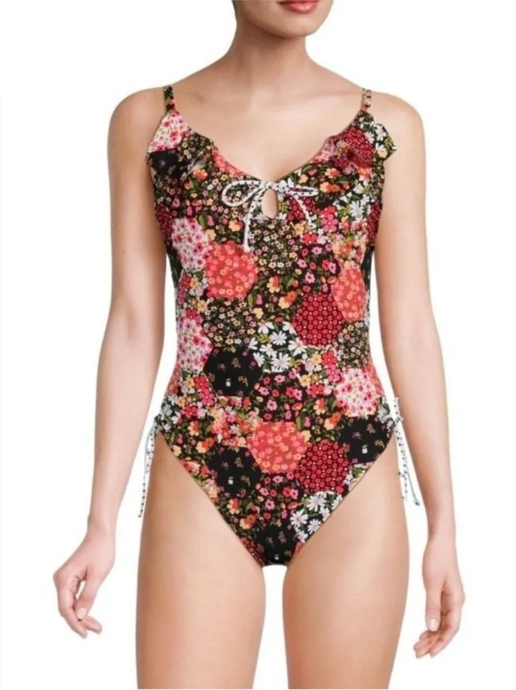 Skinny Dippers Women’s Swimsuit One Piece Bathing Suit Jellyroll Rosalina Multi Colored Patchwork Floral Print XL Keyhole detail Adjustable straps Underwire Polka Dot Front ties & Side ties Ruffle trim Lined Nylon & Spandex Items ship within 24 hours from purchase M-F except US Holidays. (Orders from the Weekend ship next business day) Which is a Monday Except on US Holidays. 👍Reasonable offers accepted! 🚫No Trades Or Contact out of this Platform/Request to email Photos