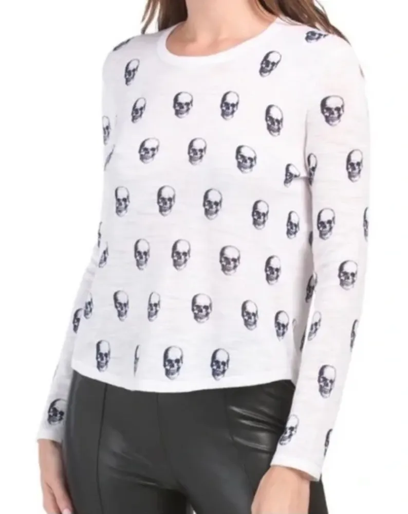 Skull Cashmere Black White Kalissa Top Tshirt Long Sleeve Skull Print Burnout XS - $57 New With Tags - From Fashion