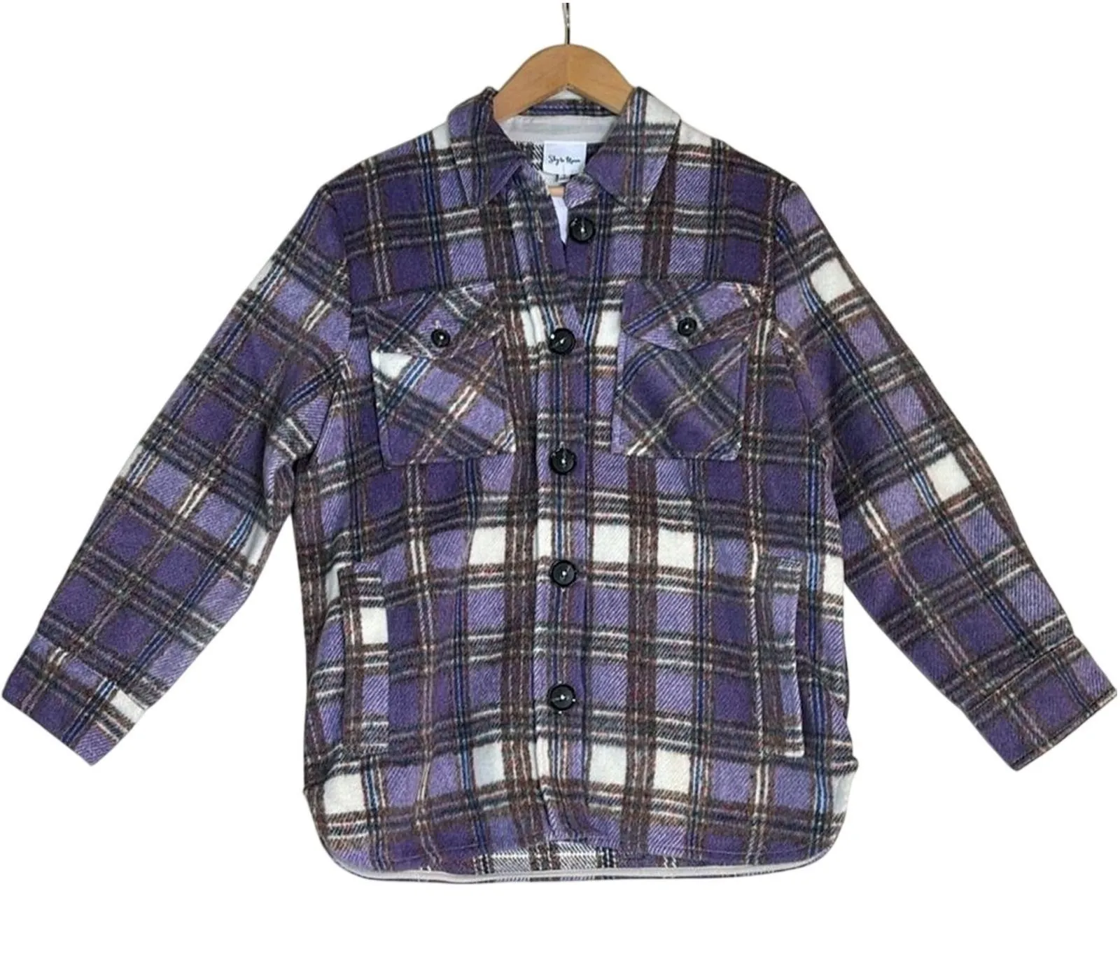 Sky To Moon Womens Shirt Shacket Sz S Purple Plaid Button Down Long Sleeve NEW - $25 New With Tags - From Krystal