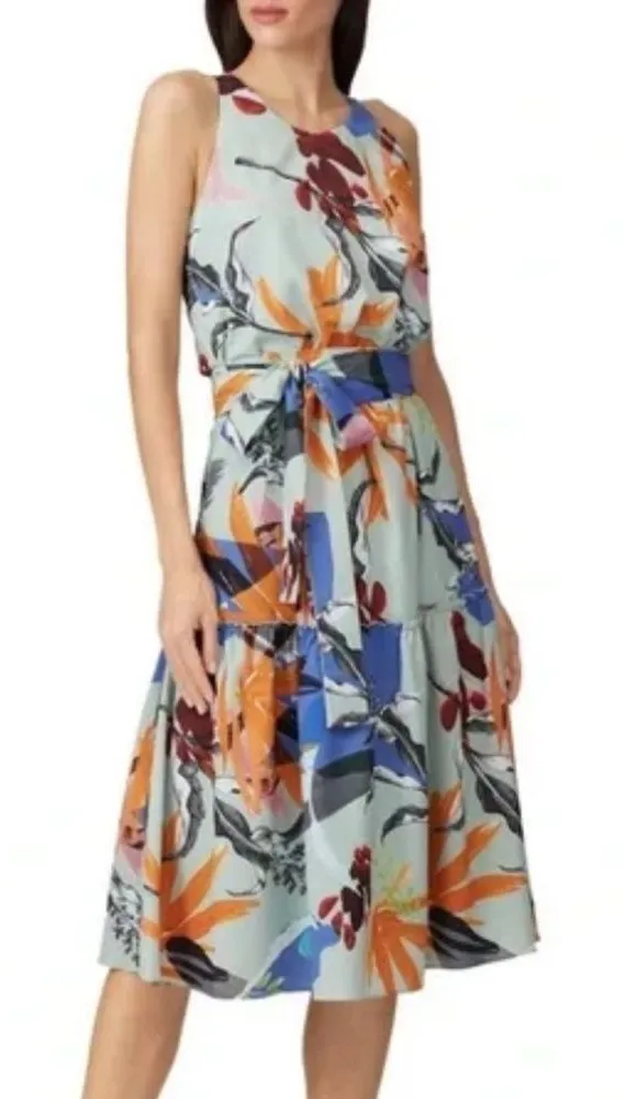 Women’s size 6 Slate & Willow sleeveless midi dress. Green with floral print, tiered bottom. Has a long sash. Great condition! Approximate flat lay measurements: Pit to pit: 18.5in Shoulder to bottom: 46in