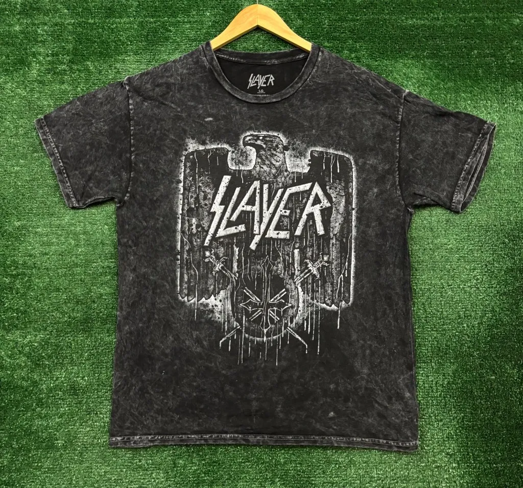 Slayer Eagle Statue Thrash Metal Band Mineral Wash T-Shirt Size Large measures 22 inches pit to pit 27 inches long Amazing shirt perfect for fans of the legendary band Slayer New overstock in great condition