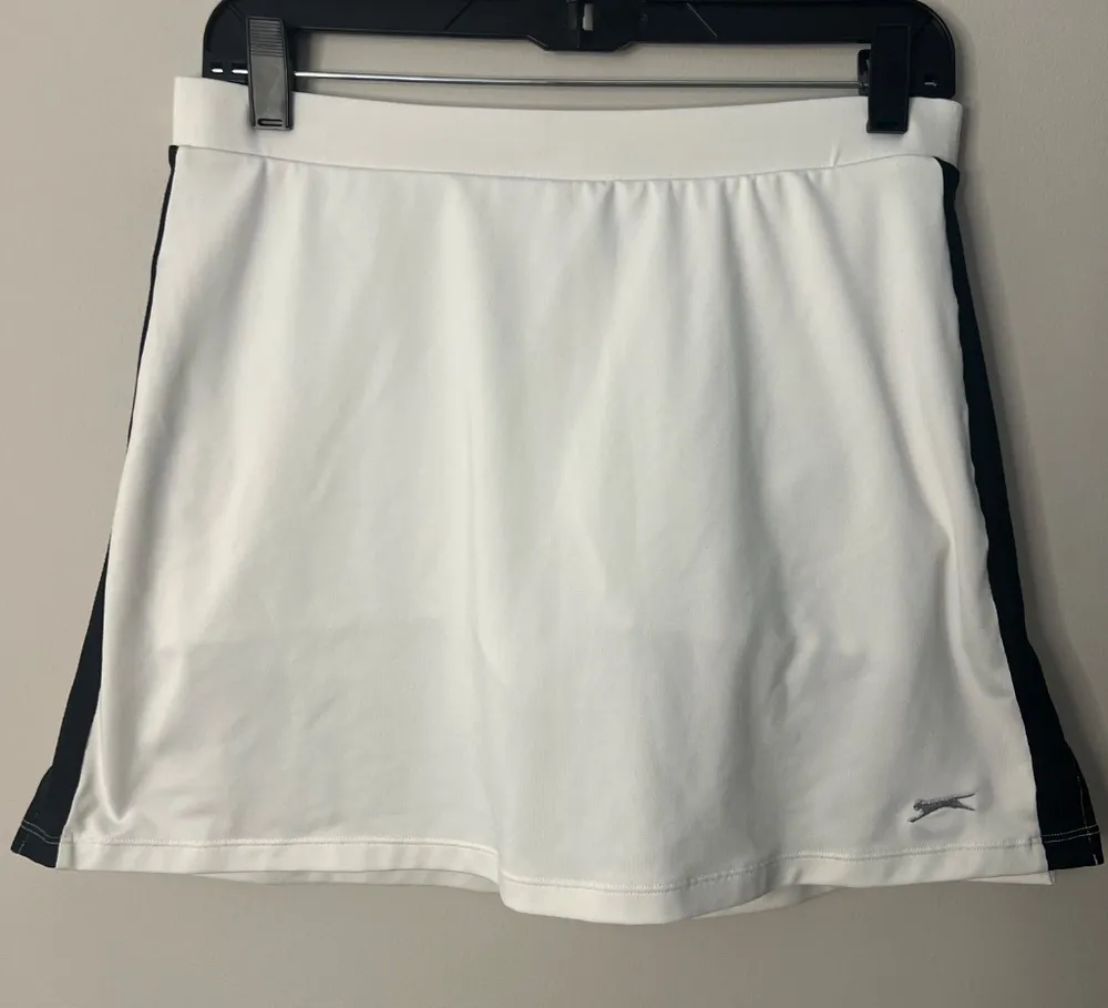 Brand: Slazenger Size: Medium (M) Color: White with black side accents Material: Stretchy, moisture-wicking fabric Features: Built-in shorts for coverage, preppy and sporty look Condition: Excellent pre-owned condition Perfect For: Tennis, golf, and activewear Y2K & 90s-inspired outfits Preppy streetwear aesthetic Casual sporty everyday wear