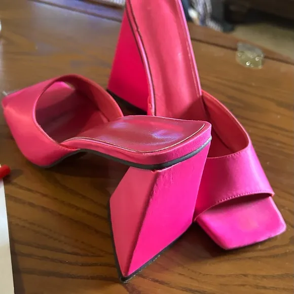 Slides beautiful chunky pink satin slides are hot! Size 40 9 1/2 USA Triangle - $21 - From Alan
