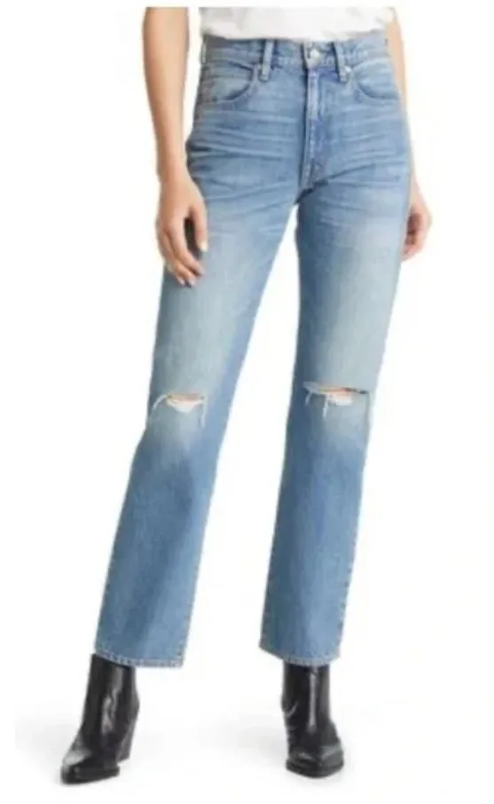 Elevate your denim game with these SLVRLAKE Stella high waist slim straight leg jeans in Badlands blue. These jeans are crafted from high-quality denim fabric and feature a medium wash for a timeless yet modern look. The slimming fit of these jeans flatters your figure while the straight leg cut keeps you comfortable all day long. With a size of 26 and a regular size type, these jeans are perfect for any casual occasion. The SLVRLAKE Stella model boasts a brand name you can trust, and the features of these jeans, such as the denim fabric type, make them a real standout in your wardrobe. Add some style to your outfit with these jeans that can be worn with any top. Waist across 13.5" Inseam 30" Rise 10"