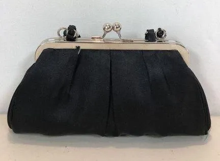 Small Black Purse Evening Bag Clutch Shoulder Cord Kiss-Lock Clasp Beaded Handle - $14 - From Raymond