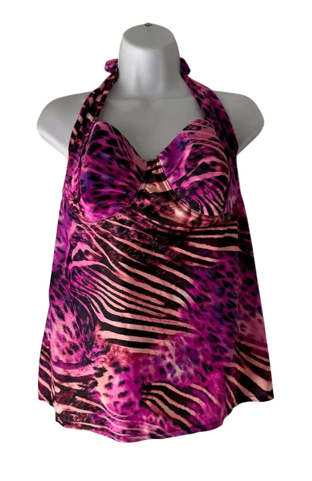 Smart & Sexy Animal Print Halter Tankini Top – 38D Padded Support Swimwear Y2K Bold Perfect for statement swimwear looks, tropical vacations, or channeling retro beach goddess energy. • Brand: Smart & Sexy • Size: 38D • Color: Hot pink, purple, and black animal print • Style: Halter tankini swim top • Features: Molded underwire cups, adjustable tie neck, flowy body • Measurements: Approx. 16” pit-to-pit • Aesthetic: Y2K, Glam, Wild Child, Bold Swimwear, Festival Beachwear • Condition: Excellent pre-owned condition Tags: smart and sexy swim top, 38D tankini, y2k animal print, bold swimwear, halter bikini top, padded bust swim, zebra print tankini, purple leopard swim top, beach babe, summer fashion