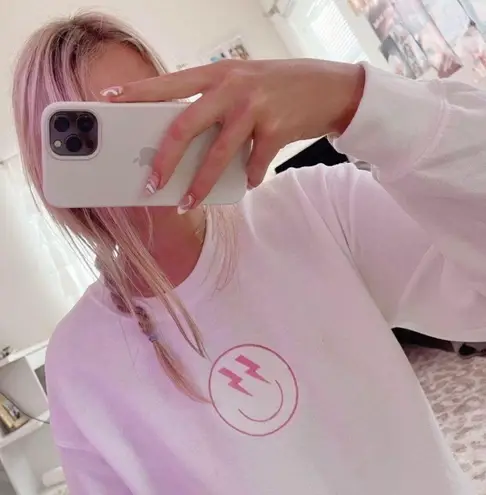 smiley face embroidered sweatshirt white crewneck , hot pink smiley face CUSTOM MADE BY ME oversized... Show more