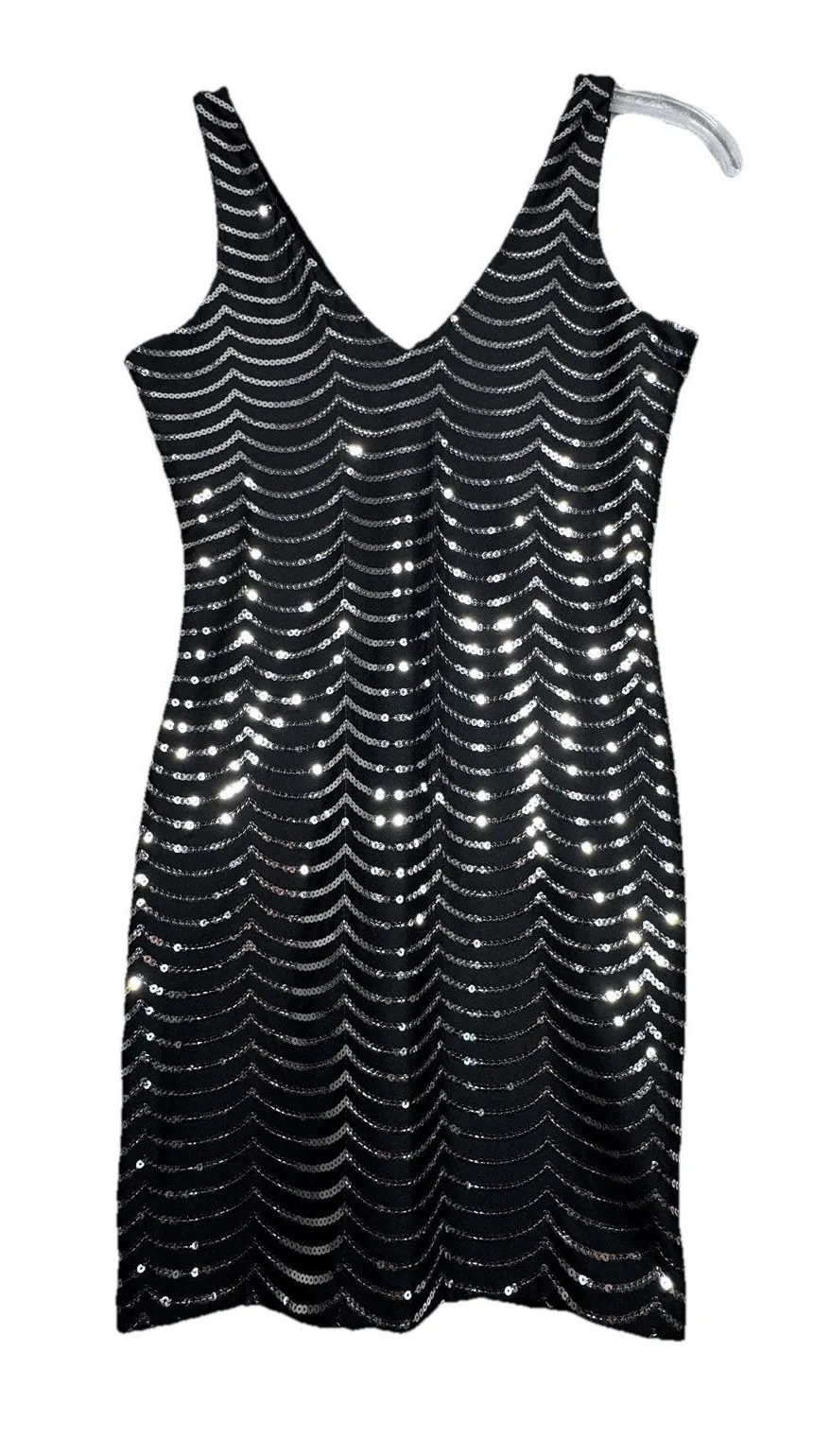 Snap Dress Women Medium Black Silver Allover Scalloped Sequins Party Date Night Women’s Size Small... Show more