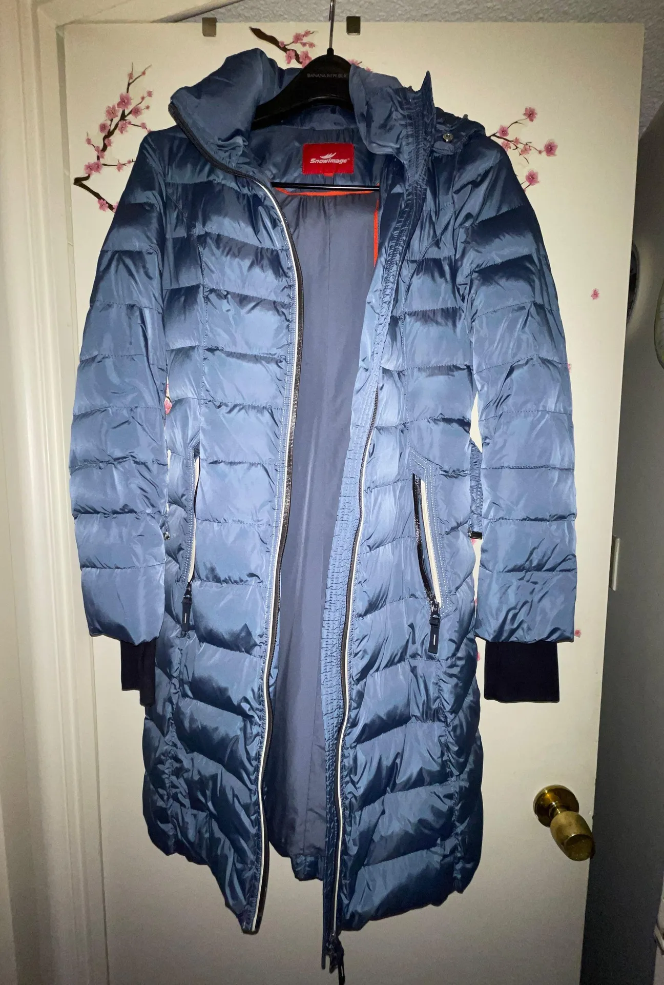 In perfect condition, I’m not a small so it didn’t fit me. This coat is kind of like a long puffer jacket, definitely form fitting though. - two inside pockets - built in belt - good sized pockets - built in fingerless gloves in the sleeves Snowimage is based in Brooklyn NY