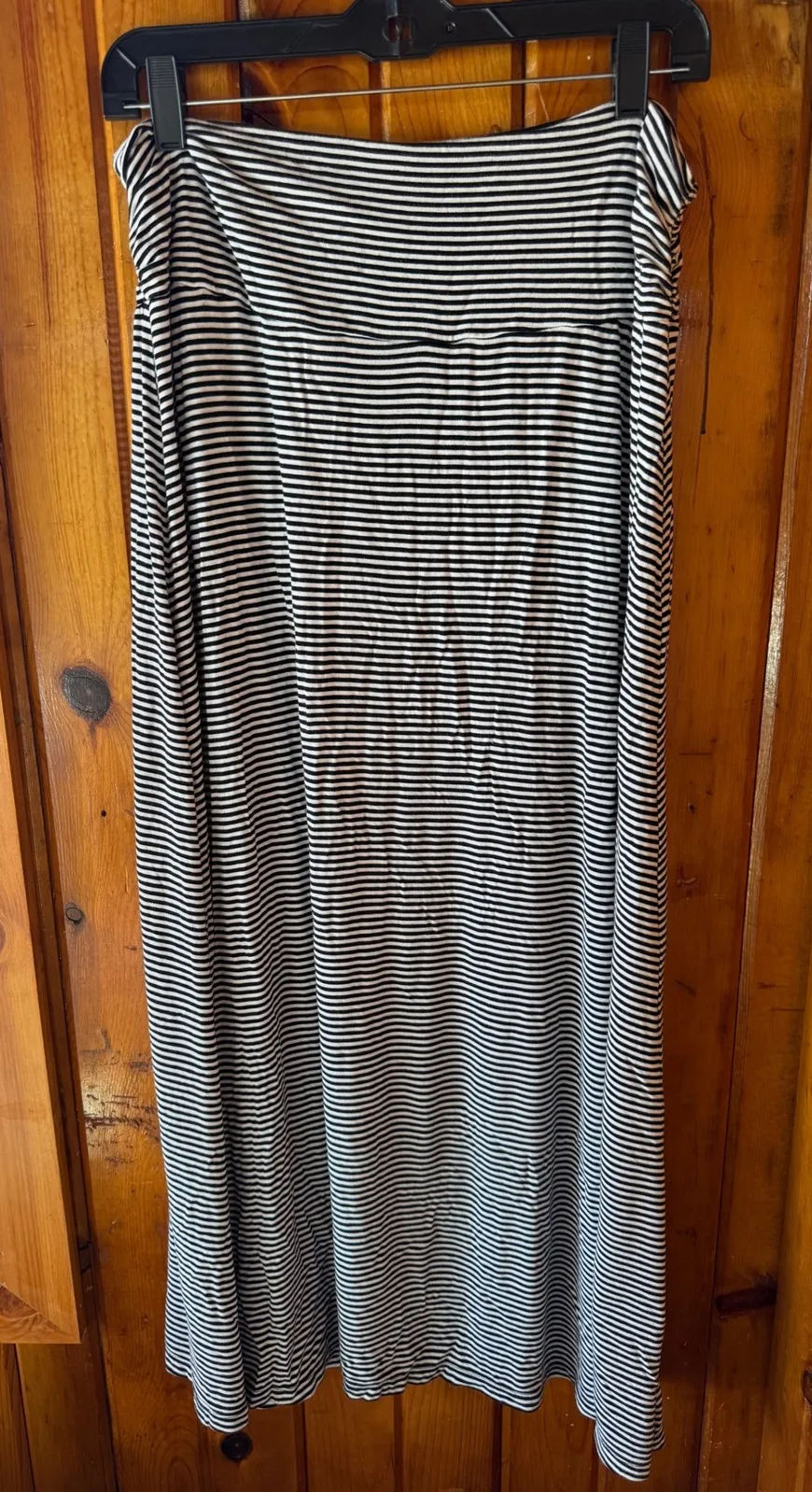Effortless style meets everyday comfort in this SO black and white striped maxi skirt. The classic h... Show more